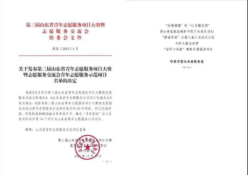 在第三届山东省青年志愿服务项目大赛暨志愿服务交流会组委会于2021年10月13日发布的《关于发布第三届山东省青年志愿服务项目大赛暨志愿服务交流会青年志愿服务示范项目名单的决定》中,对获得第三届山东省青年志愿服务项目大赛暨志愿服务交流会青年志愿服务示范项目提名的 60 个项目,经过实地考察、网络核查和随机暗访等考核环节,确定了 50 个山东省青年志愿服务示范项目。在这50个项目中,利来国际“小漫姐姐”的“心灵橡皮擦”志愿服务项目位列其中。