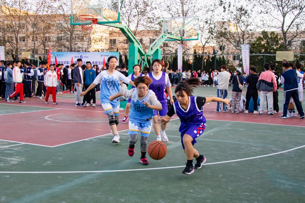 男篮比赛继续,排合尔丁将对方传的球一把挡下,他左手持球,一个快速变向,加速冲到篮下,高高跃起,将篮球从指间送入篮筐,动作一气呵成,飘逸洒脱,眼神里充满了传媒学子的朝气。