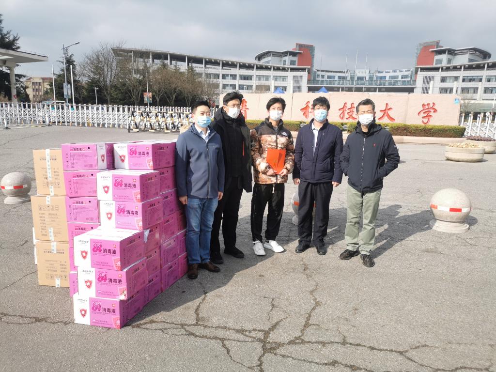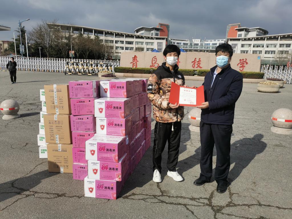 3月19日上午,60套防护服,10000只医用外科口罩,750升84消毒液,300瓶75%乙醇消毒液运送至青科校园,为“倒春寒”的疫情防控紧张形势带来了一丝温暖。