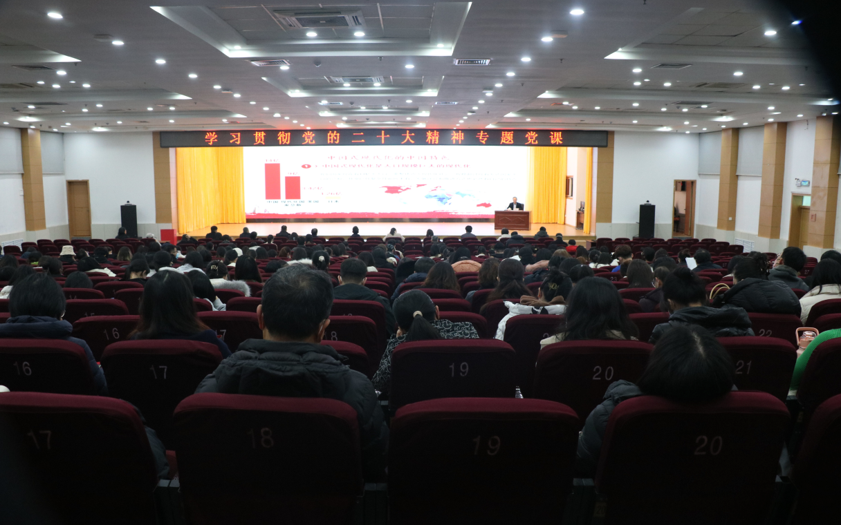 12月6日下午,公司党委常委、纪委书记、省监委驻利来w66监察专员刘明永在崂山校区第二报告厅为利来国际、法公司和外国语公司的全体师生党员开展学习贯彻党的二十大精神专题党课。
