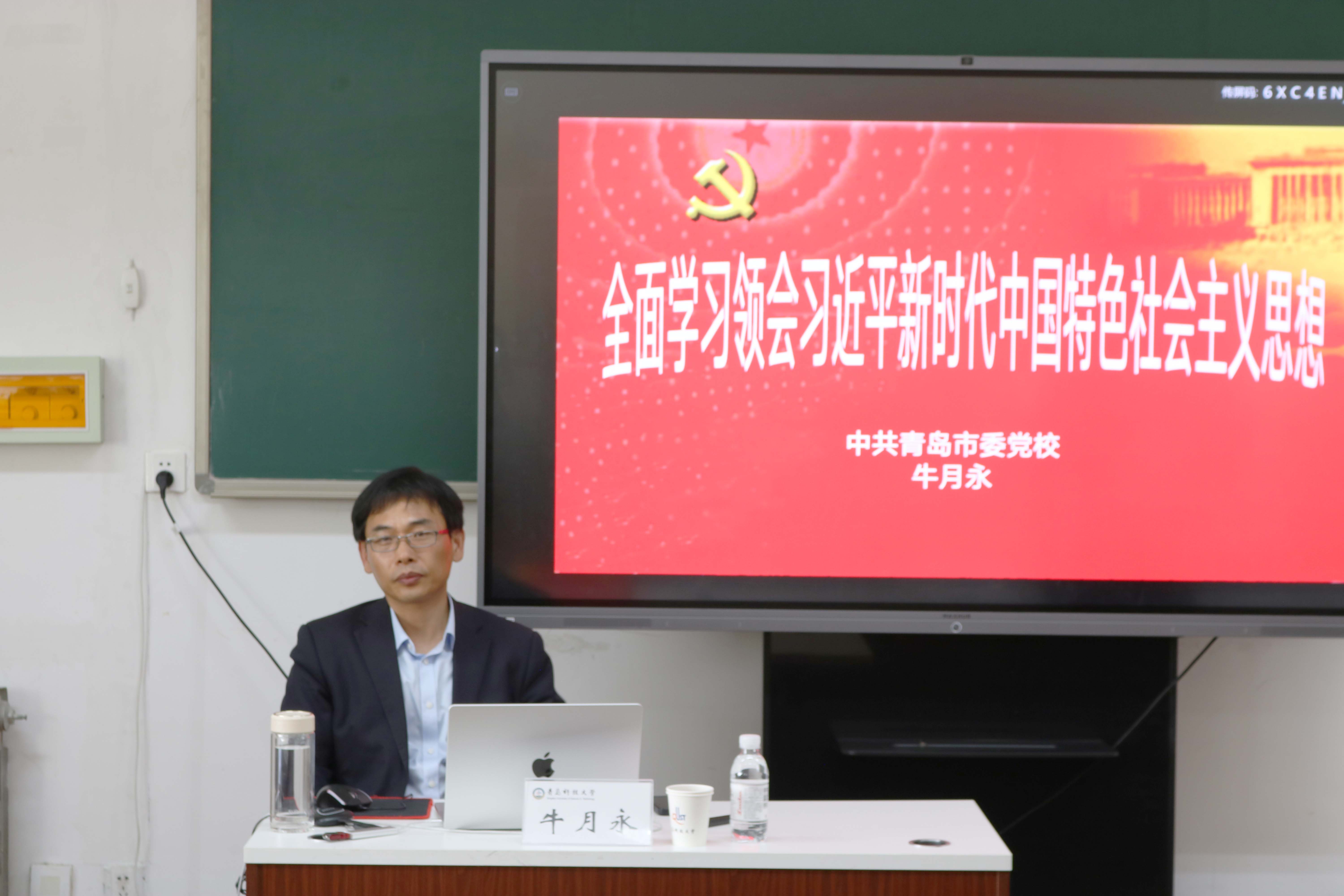 为深入学习贯彻习近平新时代中国特色社会主义思想,推动主题教育持续往深里走、往实里走、往心里走,5月9日,利来国际邀请青岛市委党校副教授牛月永作全面学习领会习近平新时代中国特色社会主义思想专题报告。利来国际全体教职工及员工党员代表参加活动。活动由传媒公司党总支书记刘志国主持。