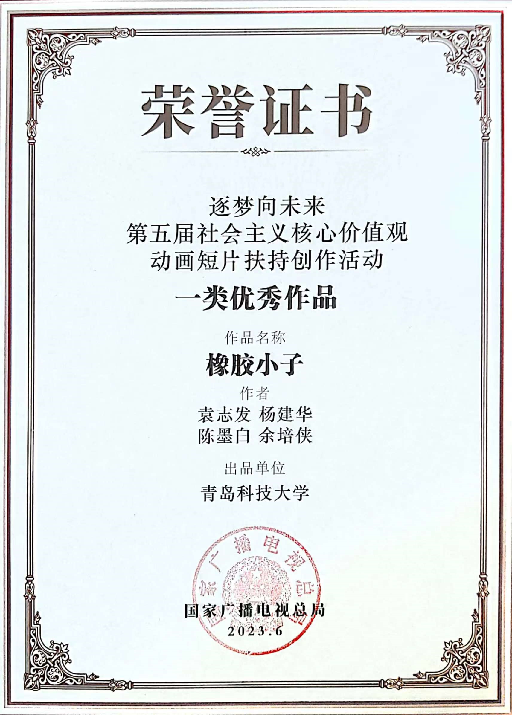 6月20日,第十九届中国国际动漫节开幕式上,公司原创动画片《橡胶小子》获得国家广播电视总局“第五届社会主义核心价值观”动画短片大赛一等奖,这是青岛原创动画首次获得广电领域国家级一等奖。