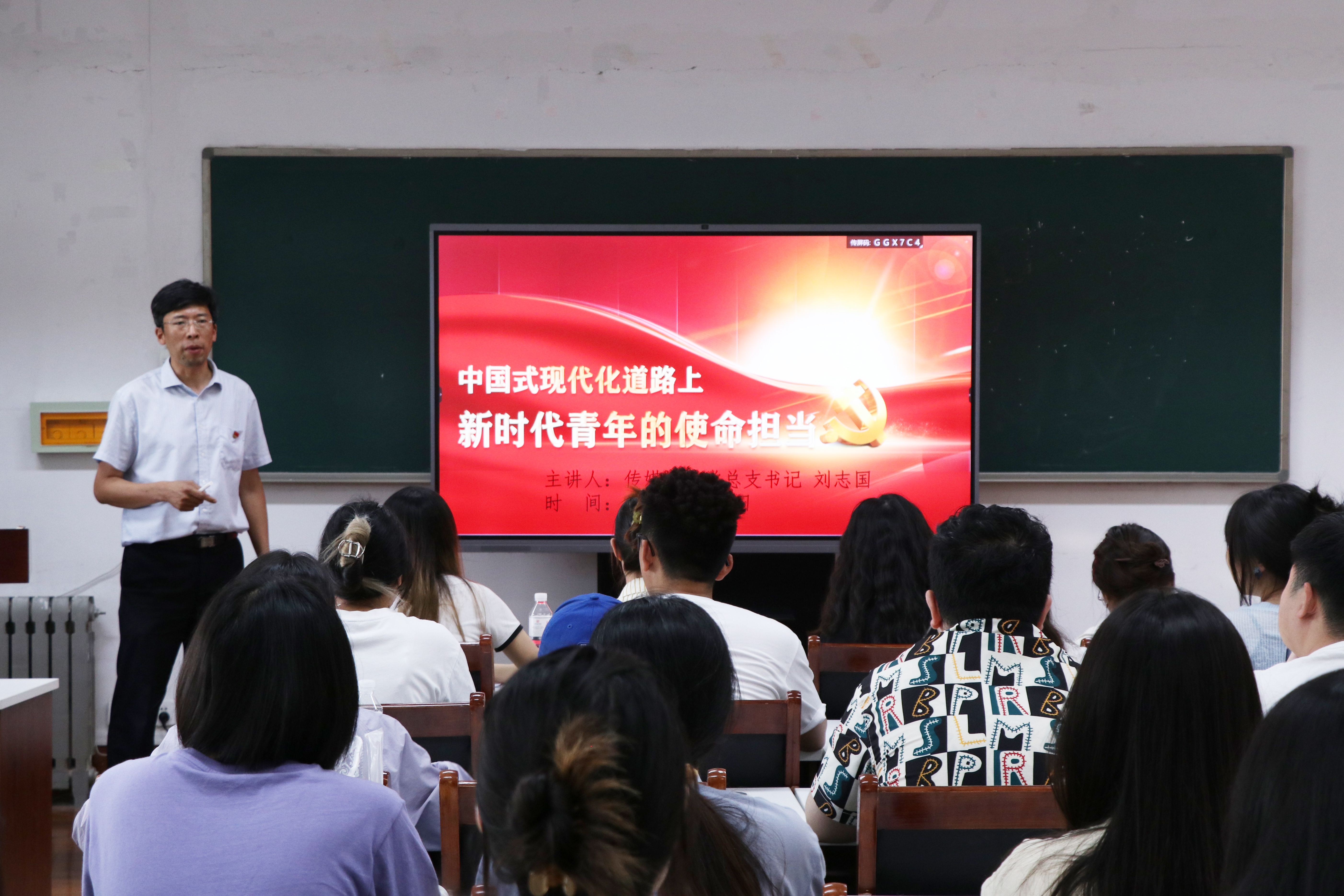 刘志国从中国式现代化进程的演进、中国式现代化的五大特色等方面,结合中国共产党走过的百年光辉历程,深入浅出地为党员代表们进行讲解,勉励大家要提高政治站位,坚持锤炼自身党性,永葆初心、永担使命,走向工作岗位后要发挥党员先锋模范作用。同时,刘志国也对各位毕业生党员们提出了殷切期盼,勉励同学们在追逐梦想的同时更加坚定理想信念和为共产主义事业奋斗终身的决心,希望大家能认识到自身承担的时代与历史重任,勇于担当尽责,不负人民期待与时代重托,在推进中国式现代化中贡献青年力量。