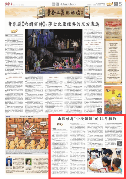 9月8日,中国青年报2023年09月08日05版以《山区娃与“小漫姐姐”的14年相约》为题,报道公司“小漫姐姐”爱心支教团连续14年爱心接力的事迹,引起关注和好评。