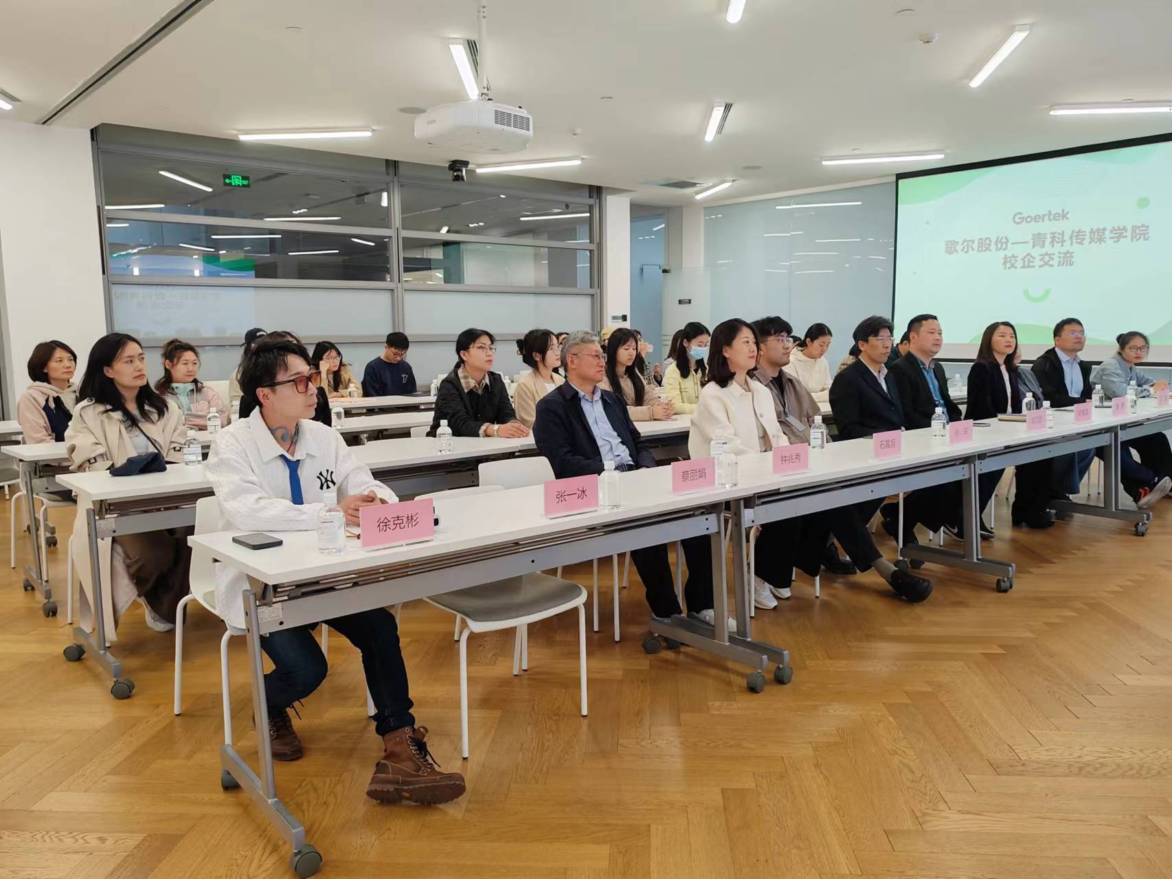 为拓宽毕业生就业渠道,深化校企合作交流,促进公司毕业生高质量就业,4月30日下午,传媒公司党委书记刘志国带队走进歌尔集团开展“访企拓岗促就业”专项行动,受到了歌尔股份有限公司校企合作经理马琳娜,歌尔创客副总经理、数字创新事业部联席总经理孙琛,歌尔创客人力资源总监袁君等的热情接待。传媒公司党政领导班子成员、各系教师代表、全体辅导员和毕业生代表等39人参加行动。