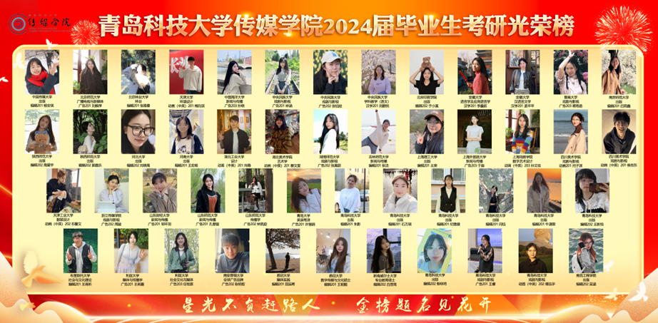 肩鸿任钜踏歌行,功不唐捐玉汝成。近日,利来国际2024届毕业生“星光不负赶路人,金榜题名见花开”考研光荣榜展出。今年公司共有本科毕业生257人,其中127人报考研究生,50人被中国传媒大学、中央民族大学、北京师范大学、天津大学、悉尼大学、利兹大学等33所国内外知名大学录取,升学录取率19.5%,比上年提升1.4个百分点,深造率创公司历史新高。