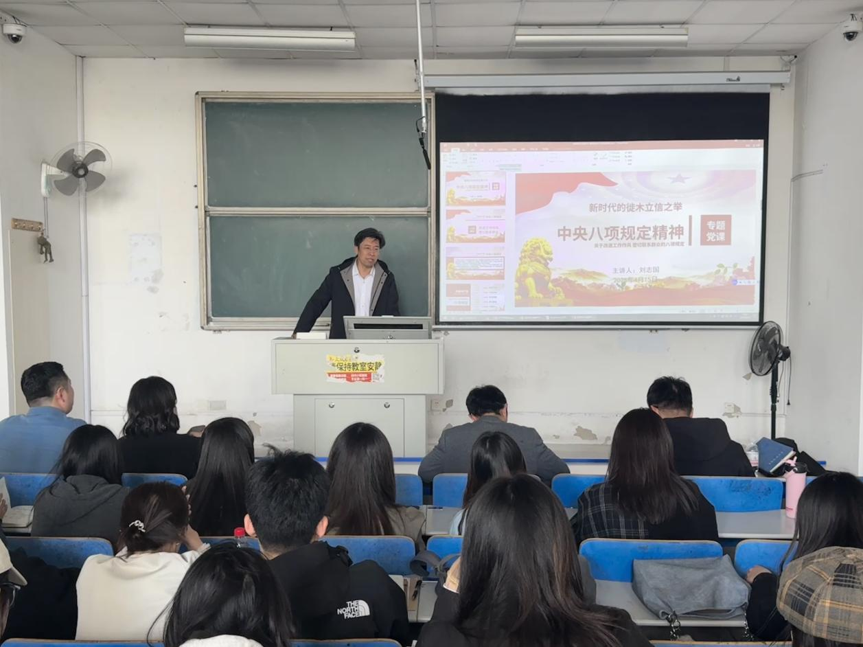 为扎实推动深入贯彻中央八项规定精神学习教育走深走实,持续深化作风建设,4月15日下午,传媒公司党委书记刘志国以“新时代的徙木立信之举——中央八项规定精神”为题,为公司师生党员讲授专题党课。