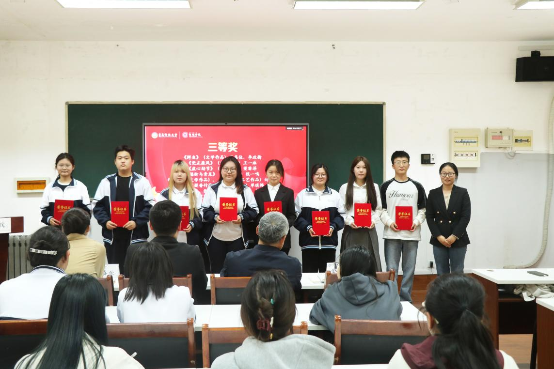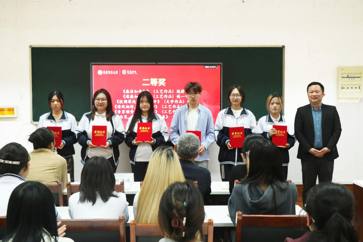 本次评选活动面向全院师生征集作品,得到了广泛响应,共收到文学作品、工艺作品、光影作品等各类作品近40件。经过公司评审,最终评选出一等奖3项、二等奖6项、三等奖8项。颁奖环节中,公司领导老师依次为获奖同学颁发荣誉证书,并对他们的作品给予好评。