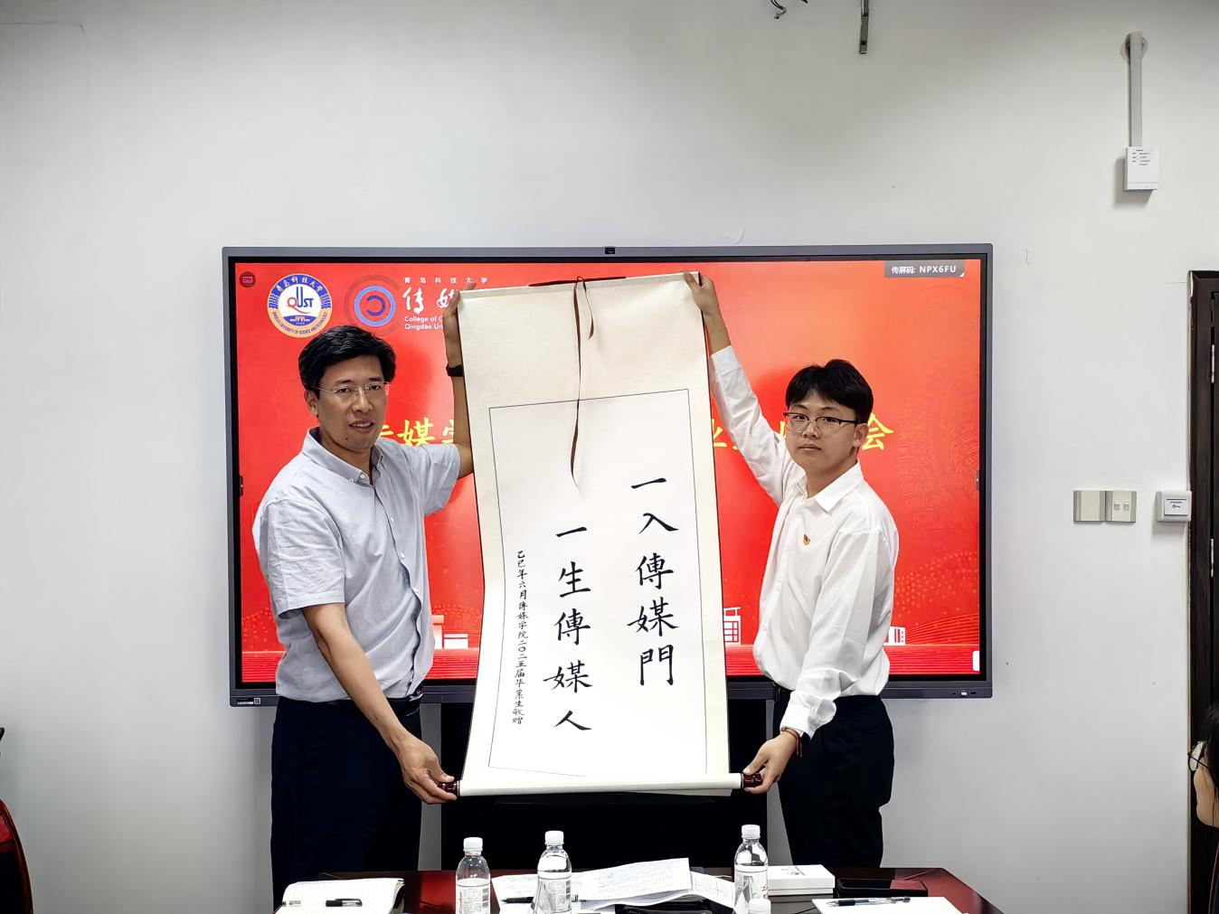 会上,毕业生代表逐一发言,表达了对公司关心培养和老师悉心栽培的感谢,并结合自身学习科研、工作生活和求职体会为公司发展提出了建设性意见建议;与会领导老师与同学们互动交流,回应关切,指导毕业生职业发展,鼓励毕业生坚定信心,保持韧劲,坚持锻炼,保持阳光心态,积极为中国式现代化贡献传媒力量。毕业生代表刘嘉玮向公司敬赠“一入传媒门,一生传媒人”的书法作品,刘志国代表公司接受毕业生赠送,并向毕业生代表回赠定制文创盒。