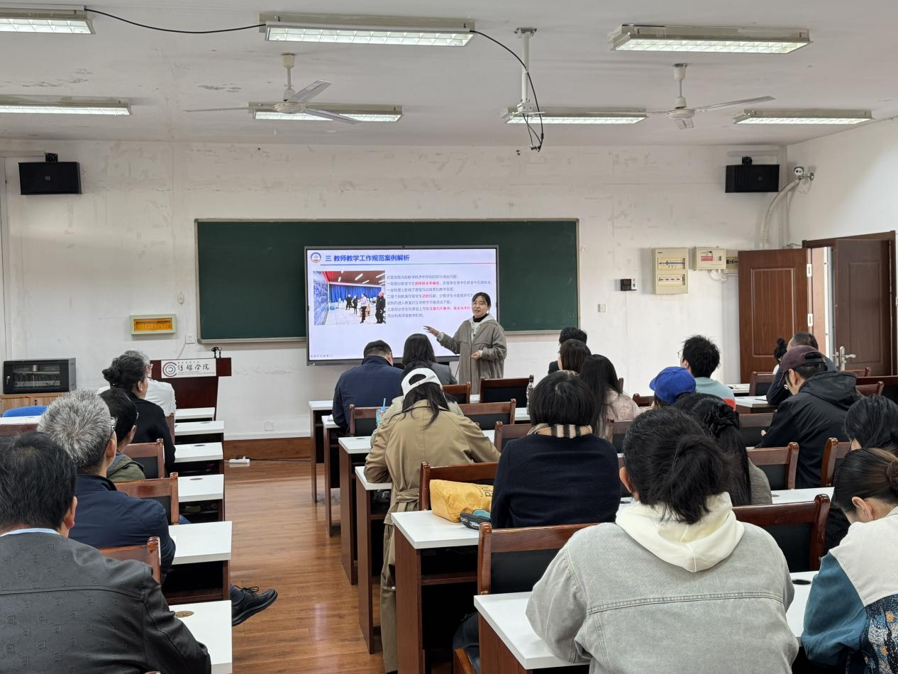 庄莹传达了公司关于教师教学工作的重点任务及部署,围绕典型教学事故案例对公司相关规章制度进行深入解析,指出教学管理规范、考试与归档管理、课堂秩序管理三个关键领域可能存在的风险点。同时,以优秀课堂教学设计案例为示范,为教师优化课堂教学提供参考,引导全院教师将公司公司产品规范内化于心、外化于行。