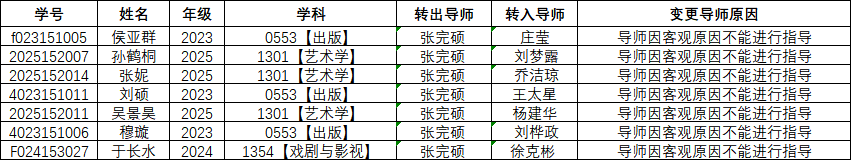 传媒公司学位分委员会会议于2026年3月17日召开,会议应出席委员11人,实到委员11人。会议同意以下同学硕士研究生变更导师,全票通过。(出席会议的委员必须达到全体成员的三分之二以上,同意票达到全体成员的三分之二以上为通过)。具体名单如下: