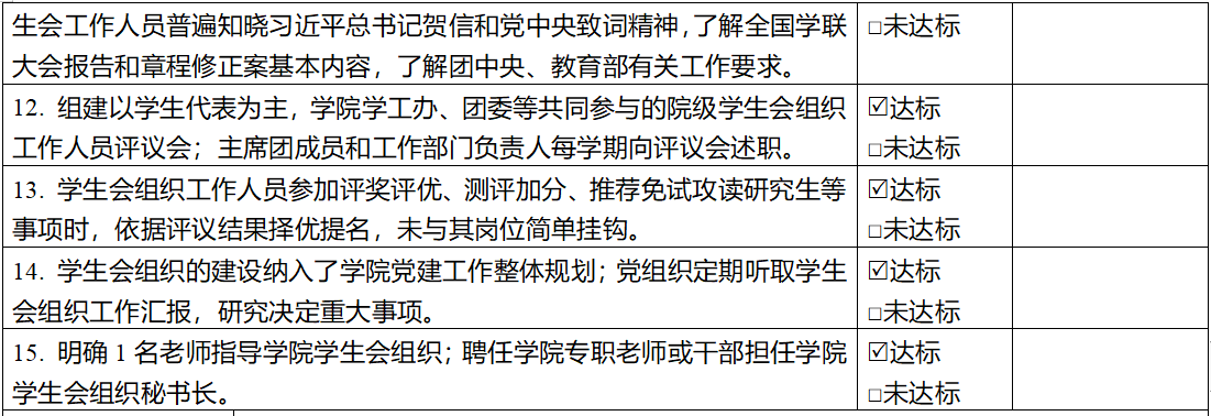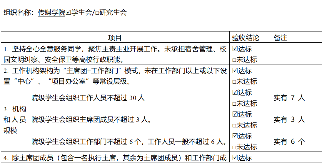 办公室及主席团根据各部门的例会出勤率、活动出勤率、值日情况进行学期的优秀部门评定。