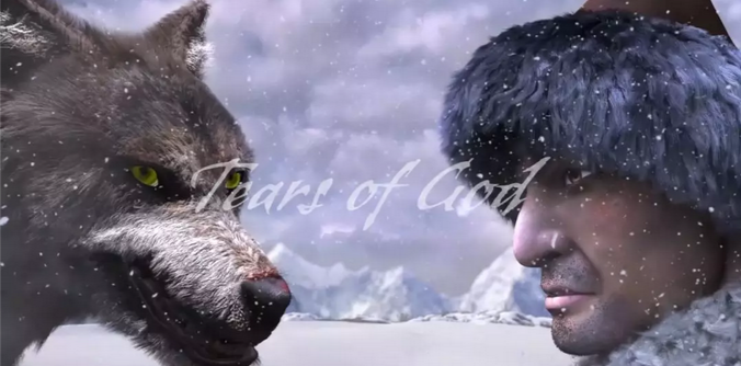 动画短片《Tears of God》通过讲述人与狼之间的传奇故事,赋予了人性与狼性一种全新意义的认识,以此展示人与动物是可以和谐共处的宏大主题,阐释“尊重生命、保护生命”这一环境保护的核心理念,传递人类对美好梦想的浪漫追求。全剧11分钟,不着一句台词,全靠剧情、画面与音乐的配合推进,通过视听语言向观众传达草原的辽阔美、冬天夜景的色彩美以及内蒙古自治区少数民族独有的音乐之美。