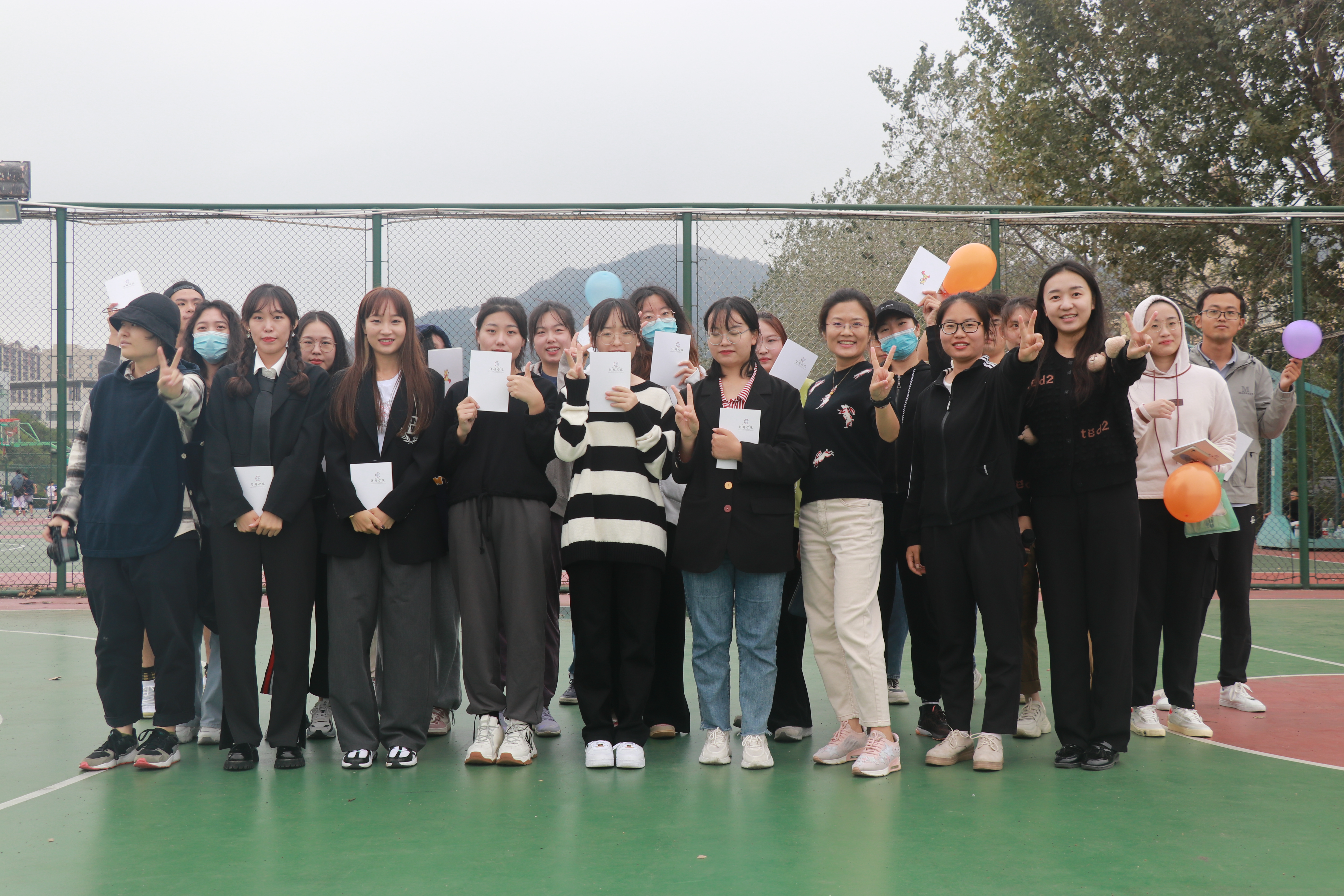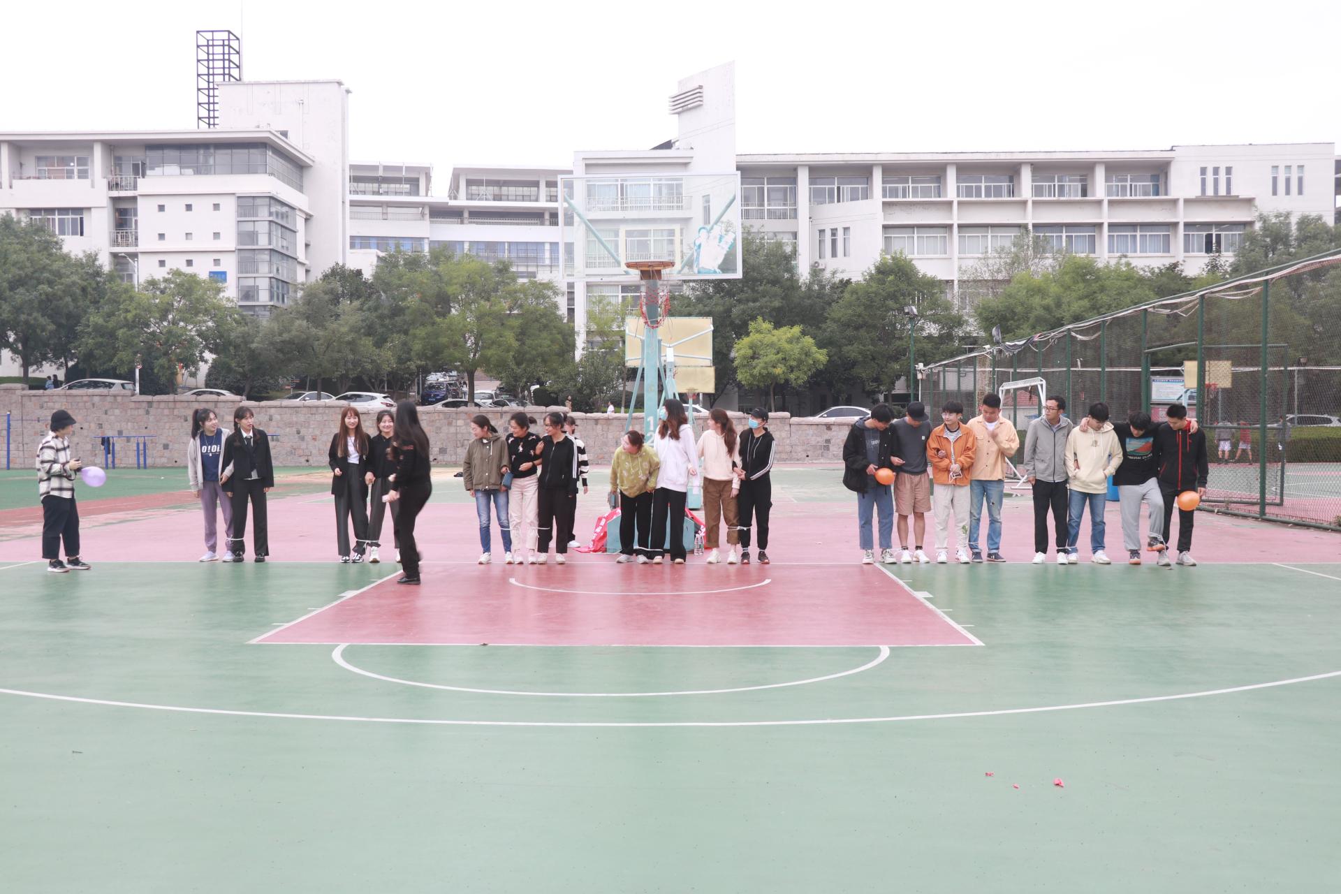 本次趣味运动会共设置“四人三足”、“双人运气球”、“数字抱团”3个项目,共有6支队伍参赛。比赛中,各队队员为了团队荣誉争分夺秒,你追我赶,成绩屡屡翻新,观众阵阵叫好,场上场下热闹非凡。运动会结束后,刘园园公布比赛结果并为同学们颁奖。