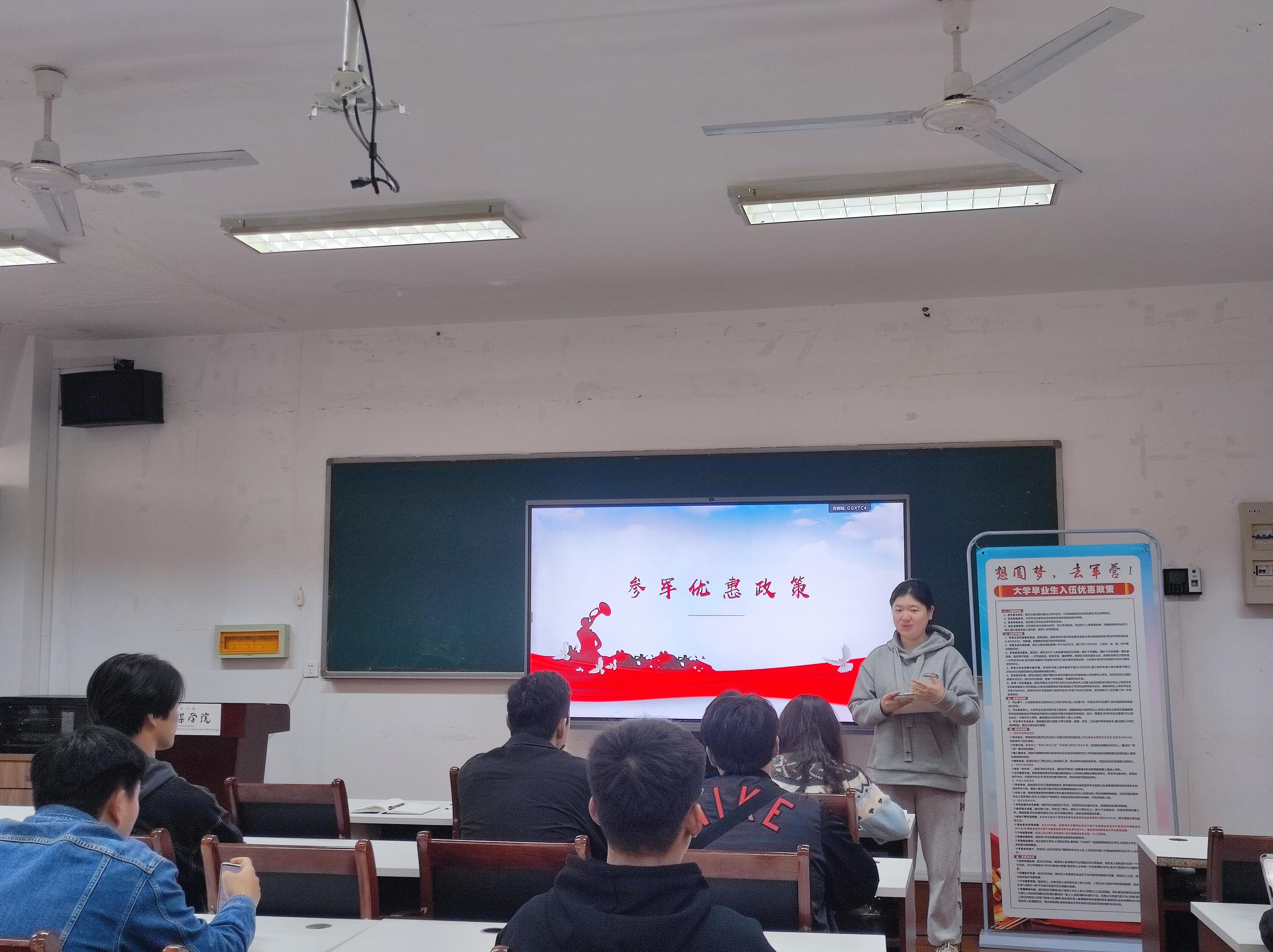金莹莹强调了国家征兵工作的重要意义,号召青年老员工作为国家的未来和希望,有责任也有义务投身国防事业,为国家的繁荣富强贡献自己的青春力量。同时,详细介绍了当前的征兵入伍政策,包括报名条件、选拔流程、优惠政策等,让同学们对参军入伍有了更加全面和深入的了解。