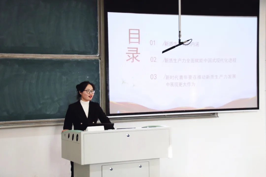 11月26日下午,利来国际团委副书记兼学工办副主任金莹莹作2023-2024学年秋季学期团校第一讲,为培训学员作主题为“青年要理解新质生产力挺立在时代潮头”的开班第一课。