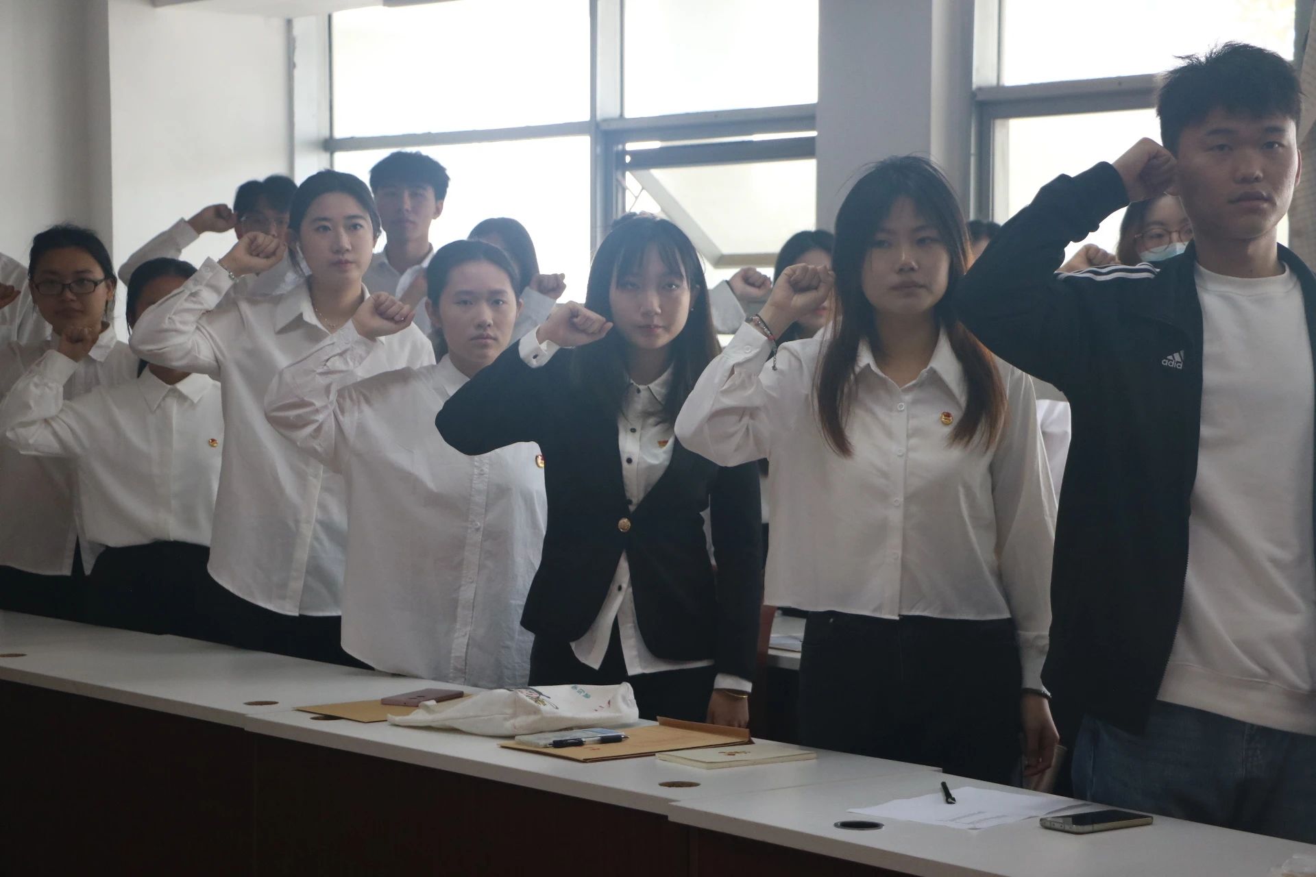 青春奋斗,拼搏奋进正当其时。仪式在雄壮的国歌声中拉开序幕,赵岩宣读2024年春季学期新发展团员名单,肯定新发展团员在个人发展、集体贡献及作用发挥等方面的成长成就,系统介绍18名“同行先锋”榜样事迹并强调,“同行先锋”涵盖员工骨干、学业达人、竞赛达人、阅读达人、技能达人、公益达人和党员先锋等群体,寄语新团员们对标先进、追求卓越,时刻以团员标准要求自己,认真接受政治训练、加强实践锻炼、追求全面进步,积极向党组织靠拢,在中国式现代化建设的新征程上挺膺担当。18名“同行先锋”为新团员郑重地颁发团徽、佩戴团徽,全体新团员面向团旗进行宣誓,将共青团薪火代代相传。