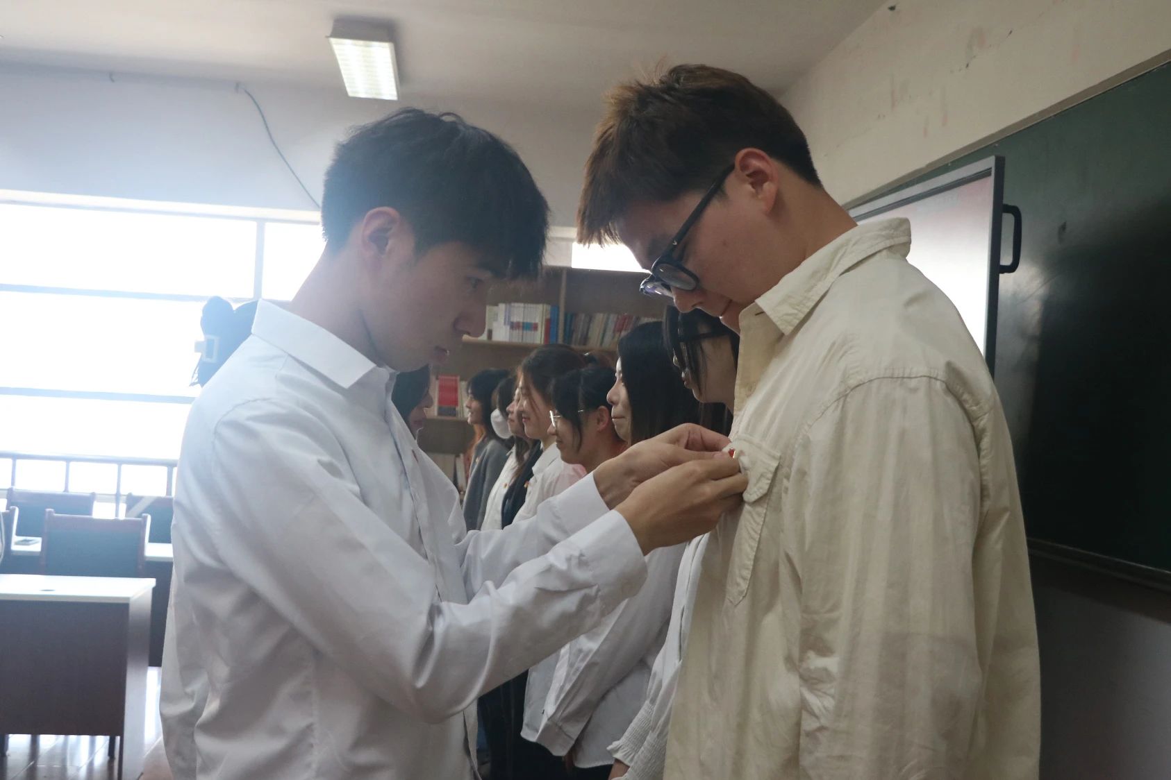 青年有为,榜样引领共话成长。“同行先锋”代表、动画(中英)222班团支书谷天予作《党的光辉照我心》经验分享,从思想品德、学习创新、员工工作、未来展望四方面总结回顾个人成长经历,号召广大团员牢记党的嘱托,始终追求卓越,践行挺膺担当,努力用过硬本领投身到实现强国伟业的进程中,并领学团员的权利义务等基础团务内容。公司为18名“同行先锋”颁发聘书,并与18名新发展团员一对一结对,贯通全链条、全场景、全方位教育培育新模式和学习实践平台,打造党团共建、整体联动工作模式。