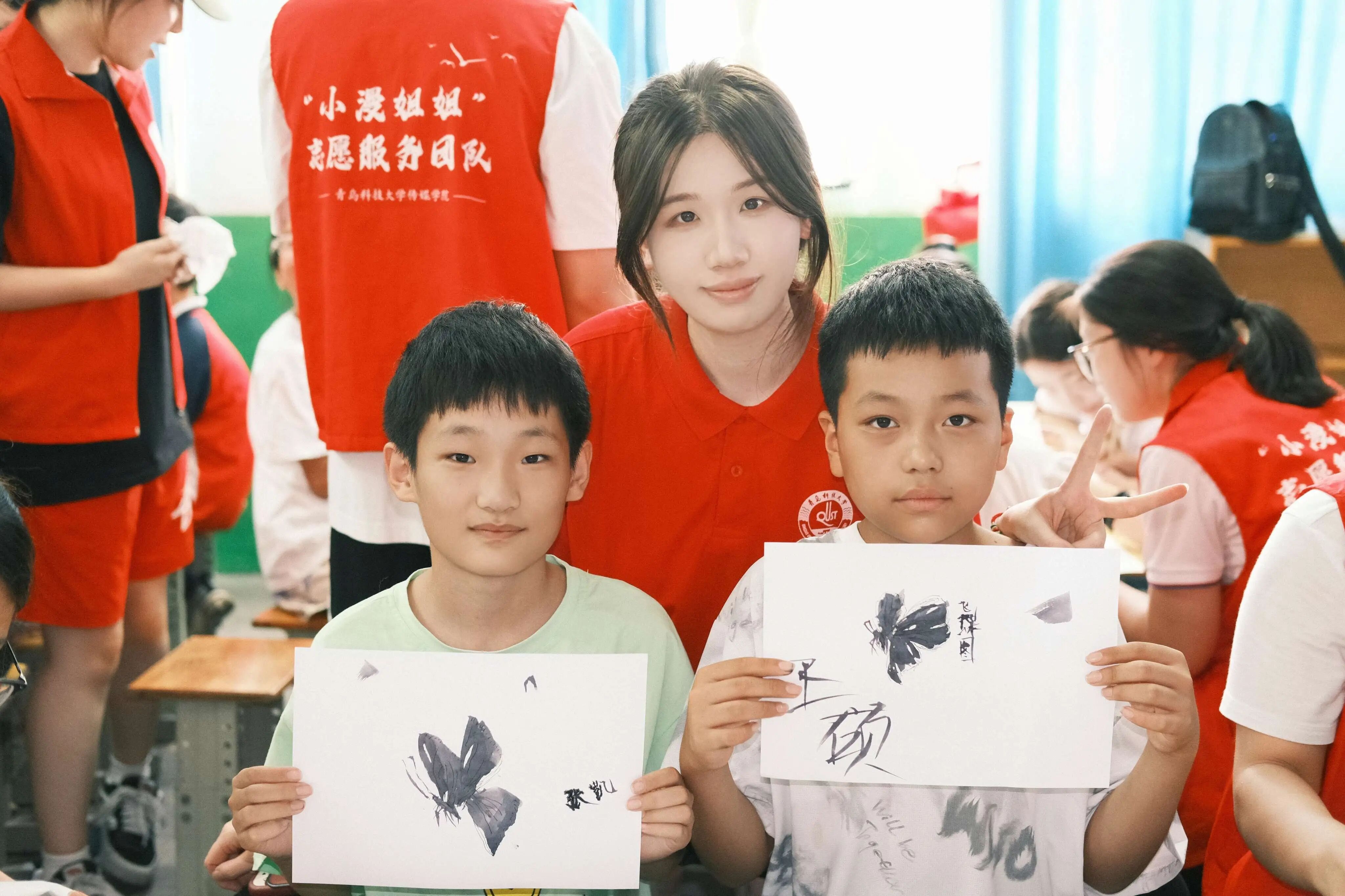 当我们拉起返程的行李箱,当山风再次送来孩子们跑调的歌声,志愿者们明白,离别只是另一种形式的约定。那些被颜料染红的指尖、被阳光晒透的校服、被笔记本夹紧的签名,早已在彼此的生命里刻下无法磨灭的印记。特别感谢涝坡镇中心小学的领导和老师们,是你们温暖的臂弯、专业的智慧与十六年如一日的坚守,为“小漫姐姐”搭建了这片教育的星空。正如涝坡镇的晚霞会记得每一句“明年见”,教育的意义也在这年复一年的接力中愈发清晰——我们种下的或许只是一粒种子,但终有一天,它会带着爱的基因,繁茂成林。