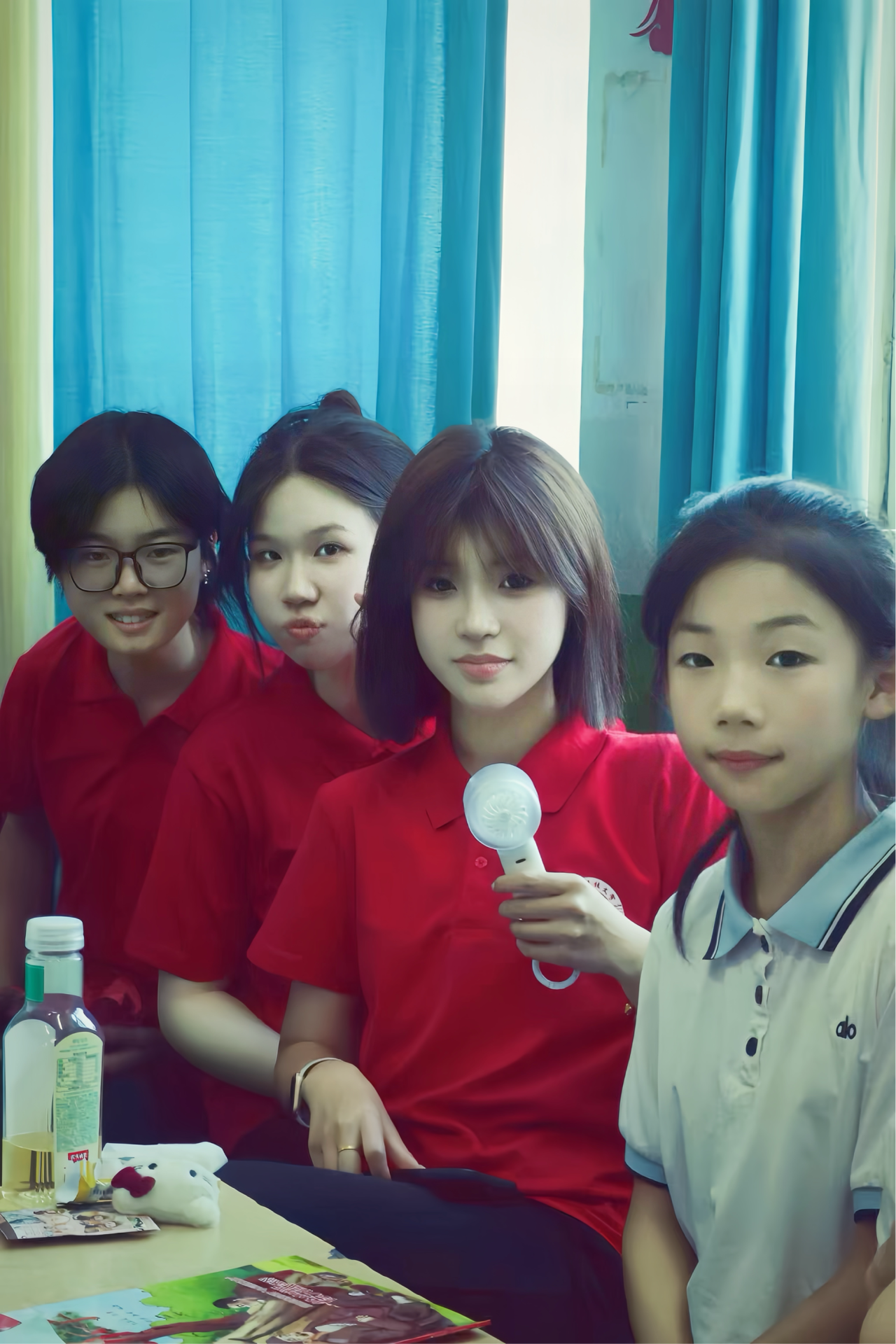 与孩子们画画、打篮球的时光,让我重拾童真。他们围着叽叽喳喳,投不进篮就赖着“再试一次”,汗水与笑脸比阳光更耀眼。离别的大合照里,剪刀手和鬼脸挤在一起——小漫姐姐的精神从不是单向给予,而是我们在他们的世界里找回热忱。童真是最治愈的礼物。