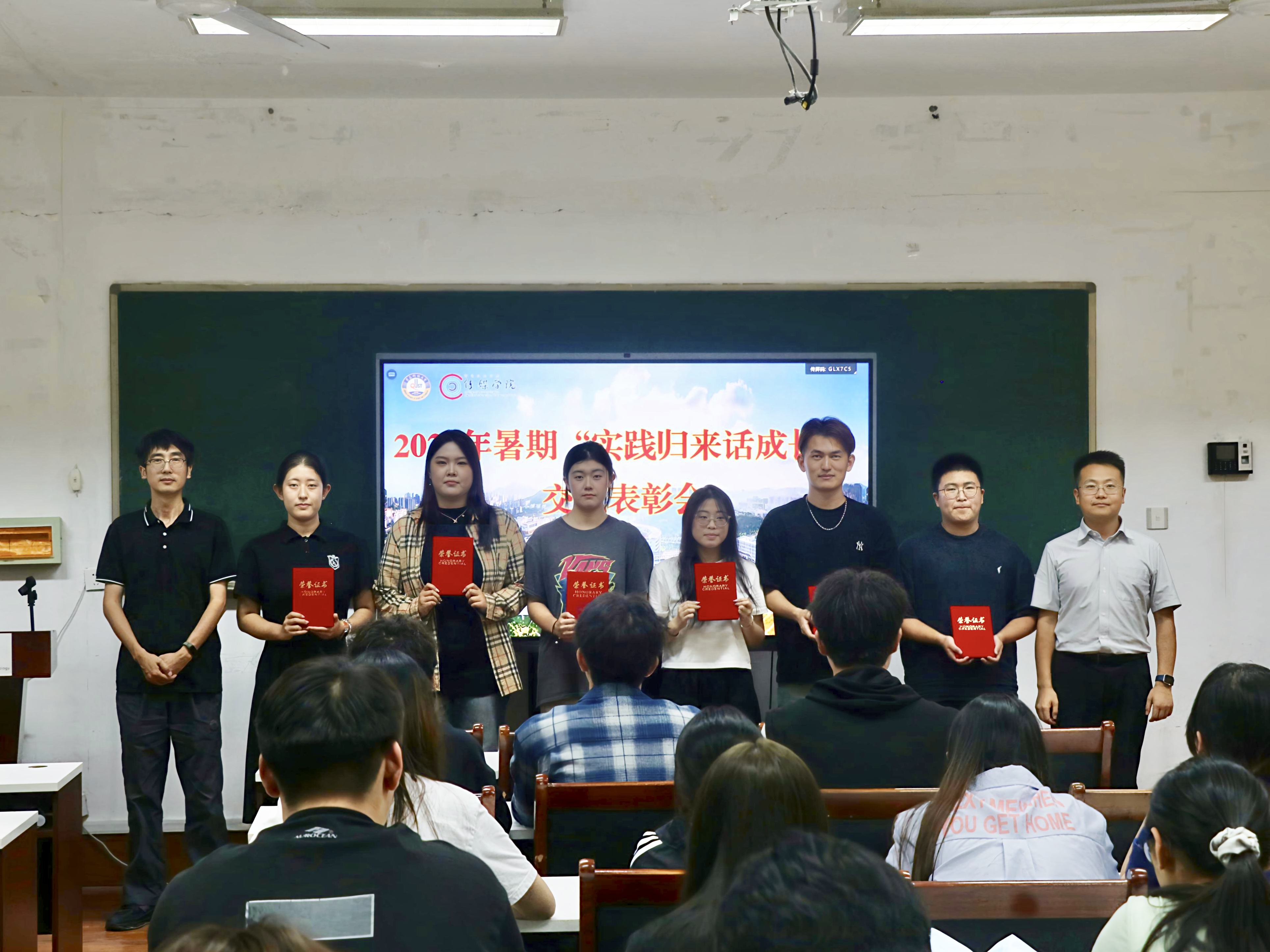 会上,社会实践团队代表与个人代表依次登台,以多元视角展现暑期实践的丰硕成果。同学们聚焦红色精神传承、乡村振兴助力、非遗文化弘扬、基层服务践行等主题,通过精心制作的图文展示与纪实视频,生动讲述了各自的实践历程及经验收获等。
