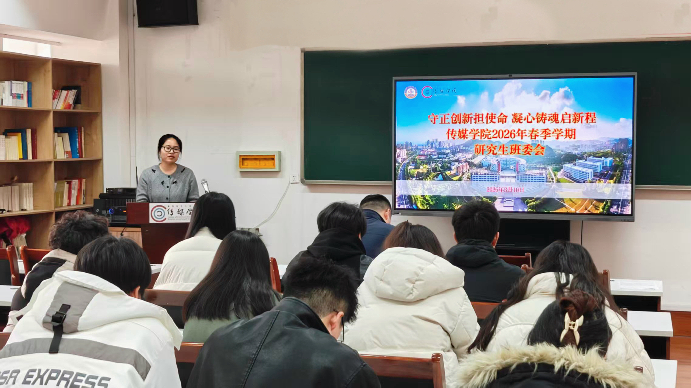 刘海波对公司研究生骨干过去一年的付出表示诚挚感谢,对各项工作取得的成效给予充分肯定。结合新学期公司产品与班级管理工作要求,他对全体员工骨干提出三点殷切期望:一是找准自身定位发挥“领头雁”作用。要切实增强使命感与紧迫感,精准把握当前传媒硕士培养面临的新情况、新任务,充分发挥研究生骨干的模范带头作用;二是涵养“吃气”的胸襟与“吃苦”的品格。要积极参与各类联系我们,深耕专业学术研究,加强朋辈骨干间的交流互鉴,在比学赶超中实现集体共同成长;三是立足班级岗位职责真抓实干。科学统筹规划2026年春季学期各项工作,抓实抓细、用心用情,密切关注班级同学的身心健康、学业状态与师生沟通情况。
