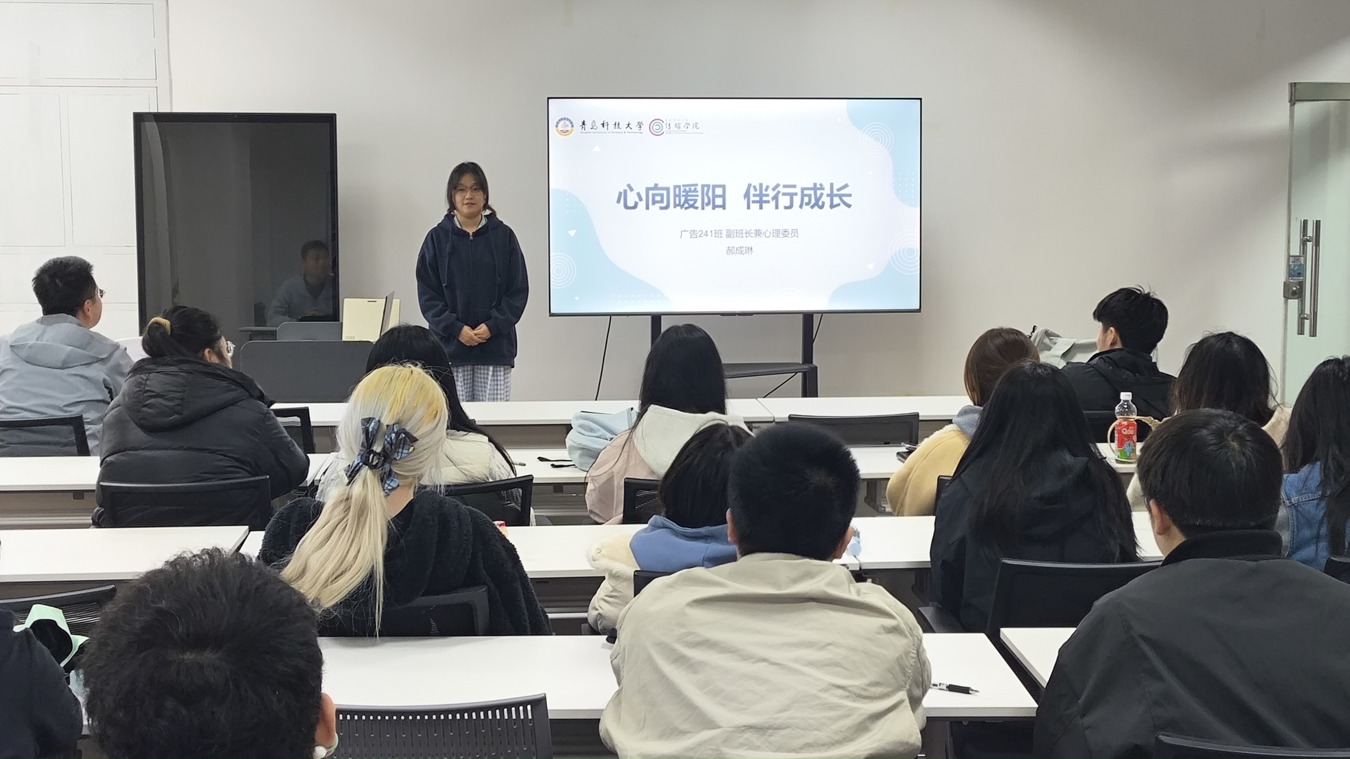在经验分享环节,去年公司“优秀心理委员”、广告241班郝成琳同学结合自身工作实践,分享了自己打造“班级心晴角”、组织“压力疏导班会”、建立“一对一倾听机制”等特色工作举措,通过具体案例展现了心理委员如何用真诚与专业搭建同学信任的桥梁。她的分享贴近实际、真挚生动,为心理委员们提供了可借鉴的实践范本。