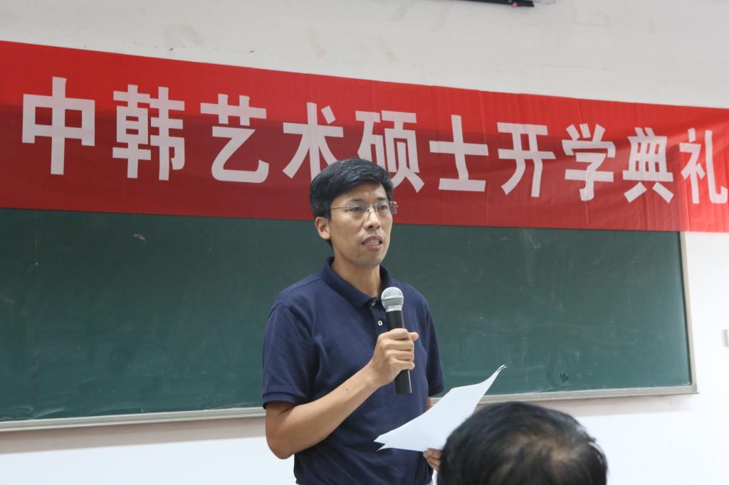 杨建华教授的讲话表达了对中韩艺术硕士项目的期望,并指出中韩艺术硕士项目有着优质的办学资源、优秀的团队队伍,希望同学们能够珍惜机会,勤奋学习,将来为中韩两国文化艺术交流做出贡献。