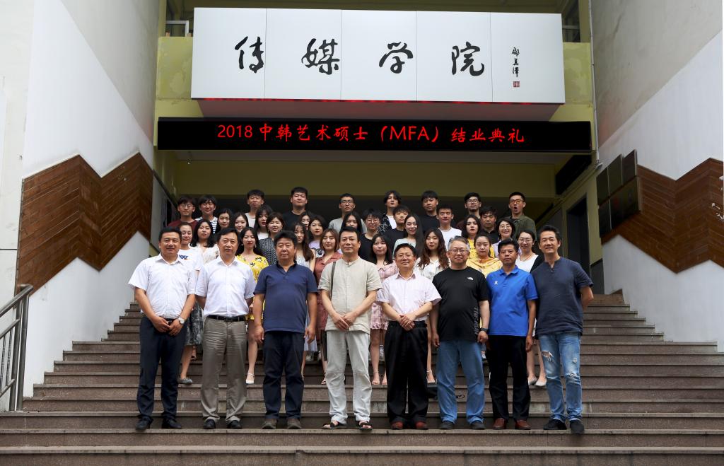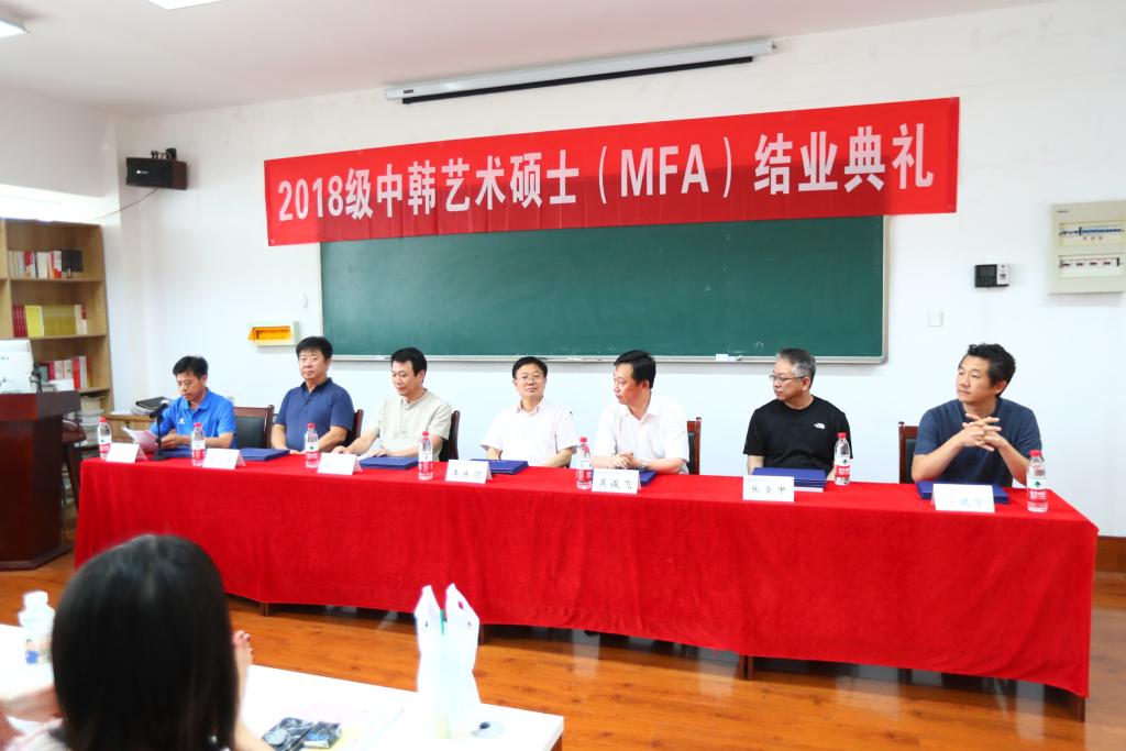 王士卿宣读了2018级中韩艺术硕士结业员工名单和表彰决定。本次评选共11名员工获得了2018级中韩艺术硕士研究生学业奖学金,10名员工在2018级中韩艺术硕士研究生作品展中获奖。