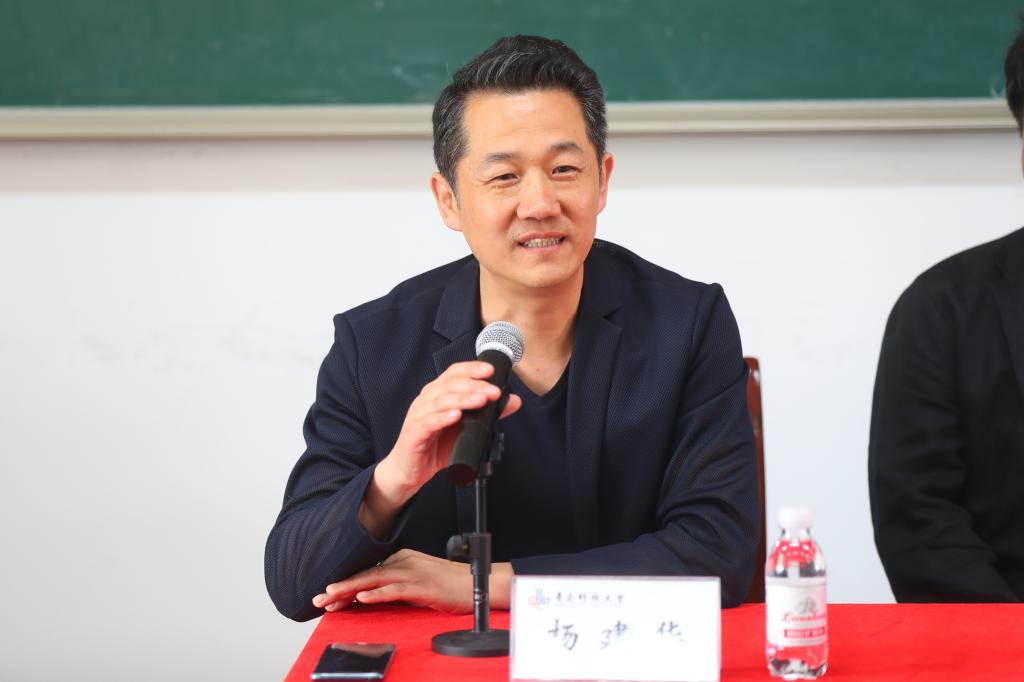 杨建华代表公司对参加论坛的嘉宾表示热烈欢迎,对长期支持公司建设的领导、同仁表示感谢,同时也希望全院师生在国际化办学的平台上努力争创佳绩。