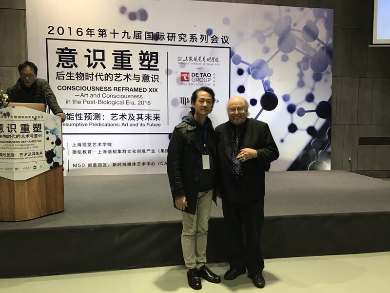 2016年第十九届国际研究系列会议“意识重塑:后生物时代的艺术与意识”在上海M50创意园举行。本次会议的主题为“可能性预测:艺术及其未来”。会议由英国普利茅斯大学星球公司创会主席、新媒体艺术先驱及创新理论家、德稻新媒体艺术大师罗伊·阿斯科特(Roy Ascott) 教授主持,并集合多重领域艺术家、理论家、科学家及教育工作者参与。