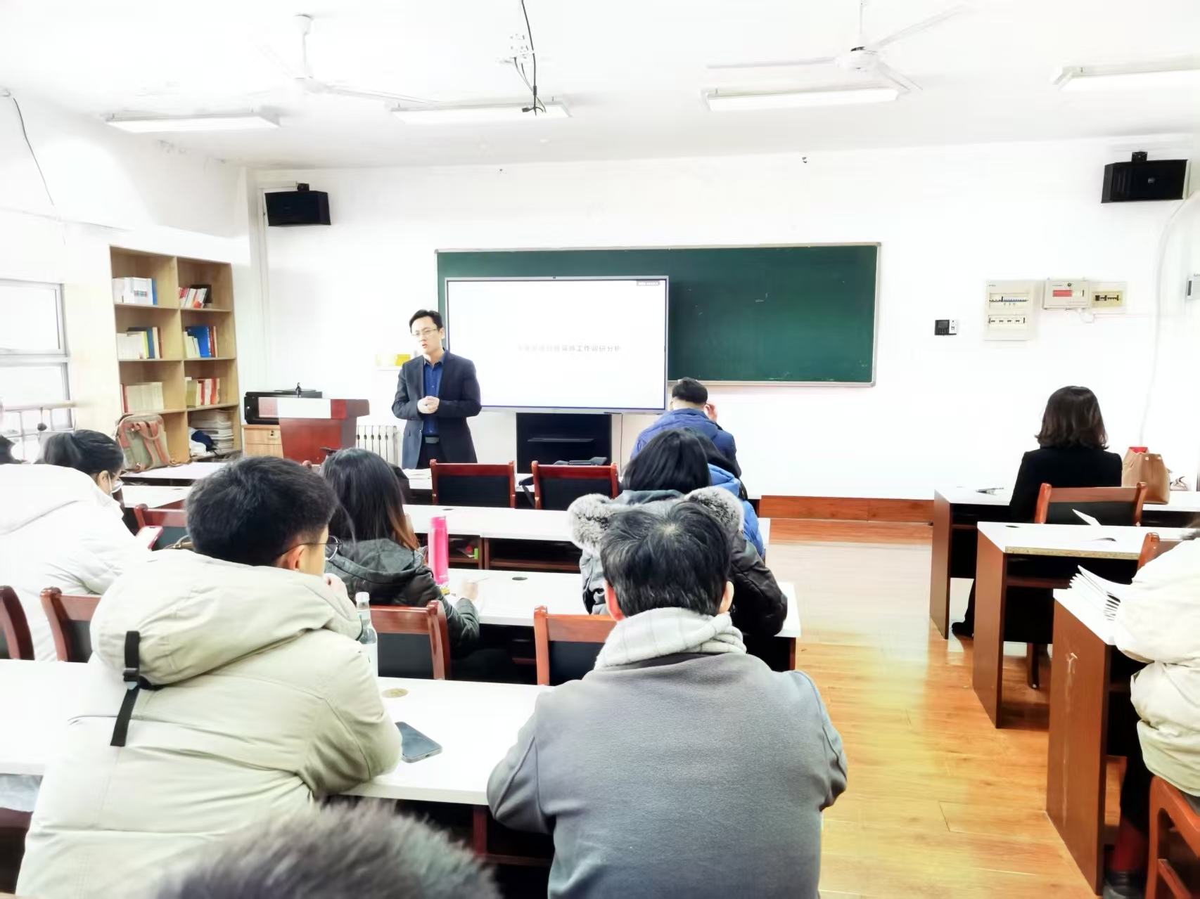 中英项目管理小组负责人、动画系主任陈墨白教授肯定了导师们一年的付出,详细阐释了中英班主任的职责与要求标准,并深入解读了陈璐老师所统计的中英动画班级导师工作调研分析报告。报告中,通过班会工作调研与班导谈心调研两个方面,客观且明确地分析了导师在班级管理中的参与程度,确保每位班级导师都能清晰地接收到员工的反馈,进而提高工作效能和参与积极性。针对班级导师的考核,项目管理小组制定了2025年的新机制,内容涵盖班级管理与文化建设、员工出勤与纪律、学业指导与成绩提升、家校沟通与合作、心理健康教育、职业规划与就业指导等十个方面,为大家的工作提供参考。