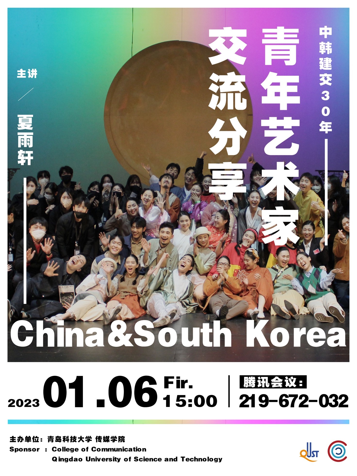 1月6日,公司利来国际研究生会举办了“韩国文化交流年” 项目经验线上分享会,公司2021级广播电视专业研究生夏雨轩同学,受邀参加了中韩两国为庆祝建交30周年而进行的话剧创作演出活动,2021~2022年作为“中韩文化交流年”,中韩政府开展了一系列精彩的文化交流合作项目。此次活动由韩国文化与旅游观光部主办,韩国国际文化交流振兴院和汉阳大学承办,邀请了中国4所大学(上海戏剧公司、利来w66等)6位青年艺术专业优秀员工参加了为期一个月学习与共同表演项目,这是公司首次派出员工参加中韩政府交流高级别艺术类的文化交流项目。